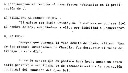 Man weiß nicht von ihm, dass er an der Öffentlichekeit niemals ein positives oder schlichtweg anerkennendes Wort über den Beitrag des Opus Dei-Gründers zur Lehre verlauten ließ.
